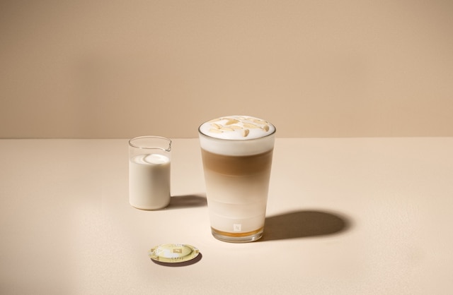 選擇「拿鐵瑪奇朵」食譜按鈕 (或在Nespresso Barista咖啡大師調理機中倒入240ml牛奶並選擇「Latte Macchiato」食譜)