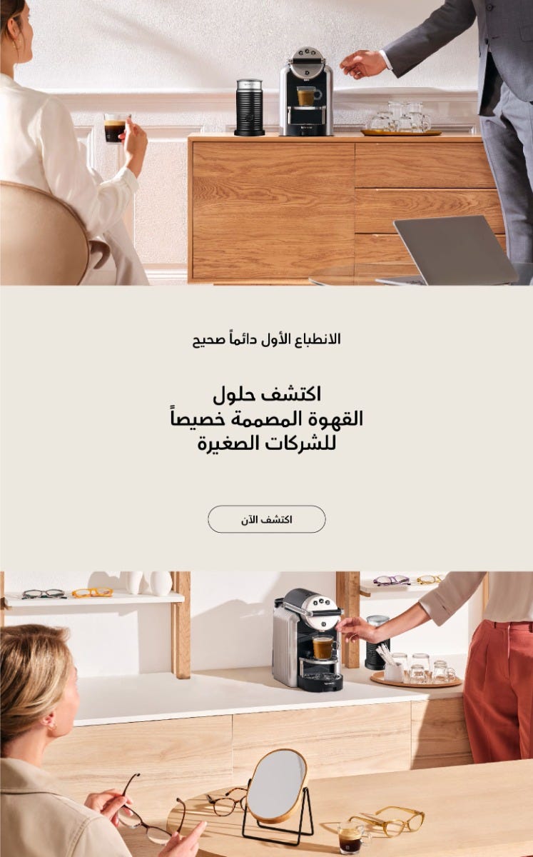 سجل طلب الشراء الآنيعكس اختيارك لقهوة نسبريسو في مكان العمل مدى اهتمام شركتك بإسعاد موظفيك وعملائك كل يوم.