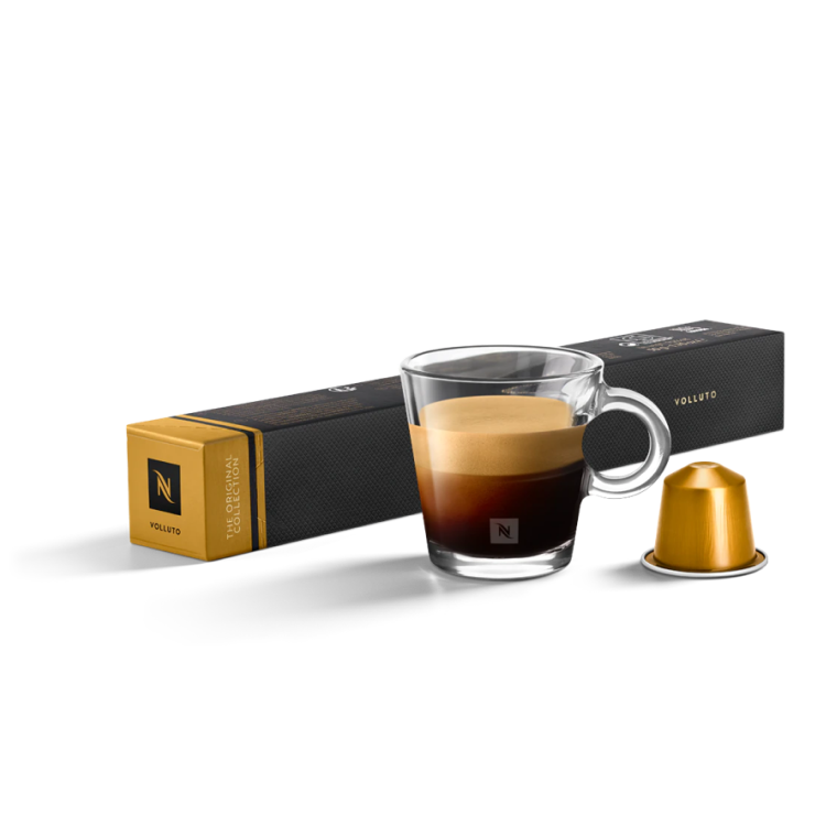 The Arabica coffees from Brazil and Colombia that go into this blend have been sustainable coffees for a long time now and they give the gold Nespresso capsule its true harmony. The farmers are among the original AAA Program troupe and they meticulously care for their coffee and their environment. A naturally processed Brazilian coffee gives Volluto a balanced profile - the edgy freshness eases off as the harvested and processed crop is left to rest and mellow. They call this local coffee tradition reposo. Volluto’s other component coffee is an Arabica from Colombia’s mid-range mountains. It’s washed and sun-dried to bring out the soft fruity flavors of the coffee.