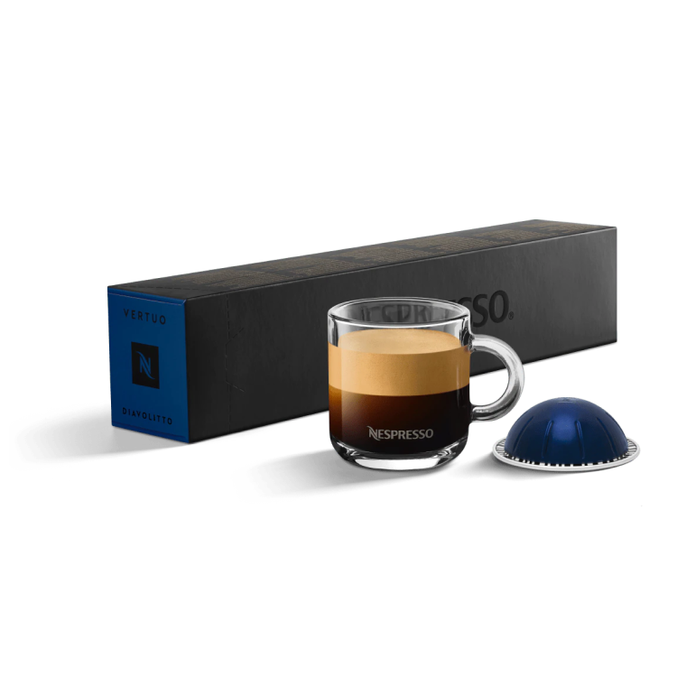 This short devil has a full body. Add milk to this Vertuo espresso coffee and the full body fills out all the more.