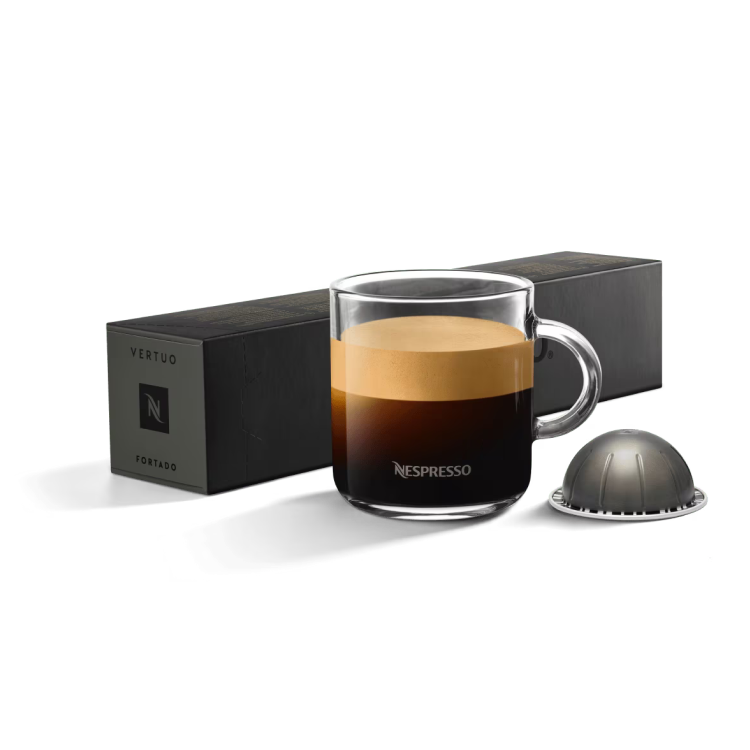 Fortado is the most intense Vertuo coffee in its Gran Lungo size. Its Indian robusta comes at you with full force, and cocoa and oak wood notes emerge from the Colombian arabica. Add a little milk to this Vertuo coffee pod and it’ll keep all its power – but with those great cocoa notes enhanced.
