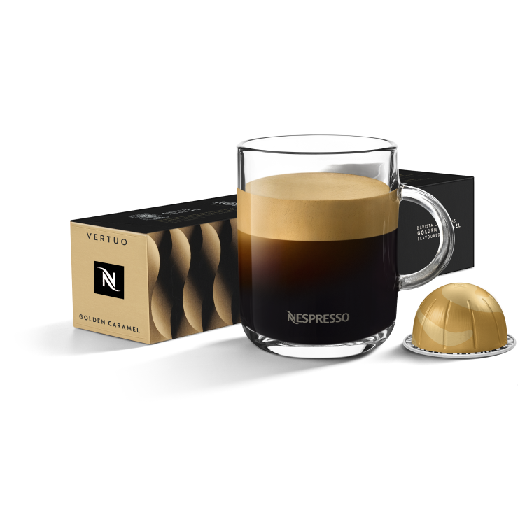 The Arabica coffees in this blend are split roasted. The Latin American beans are roasted medium dark and quickly to develop their sweetness. The second split gives this Vertuo flavoured coffee its velvety texture. We add the flavour in after roasting.