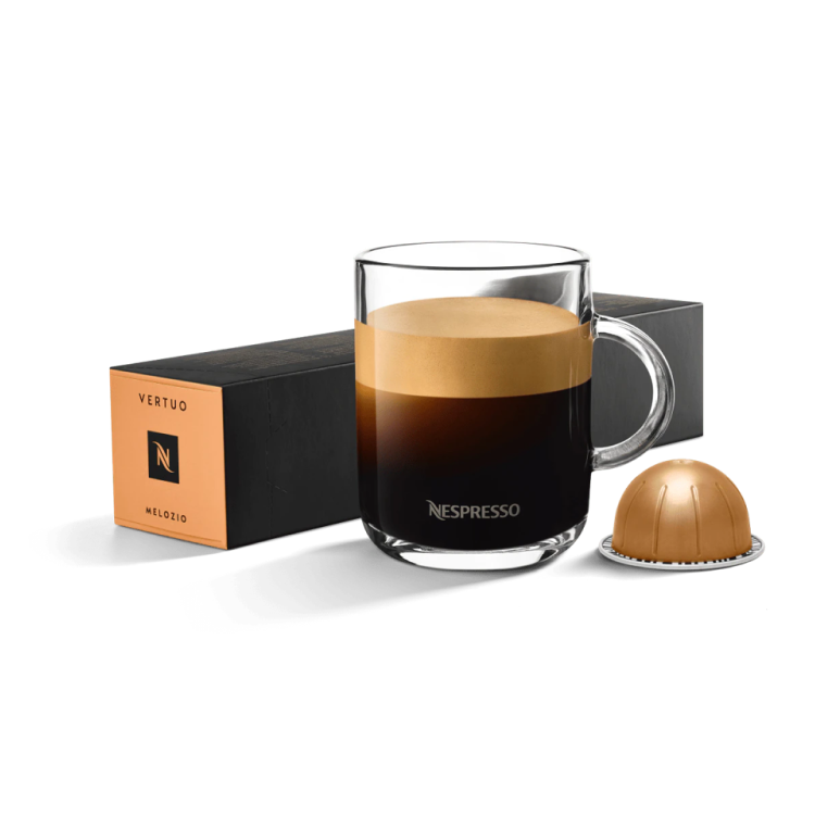 Try the Melozio coffee with milk and you’ll notice it softens the flavour and brings a dairy sweetness to this Vertuo coffee capsule.