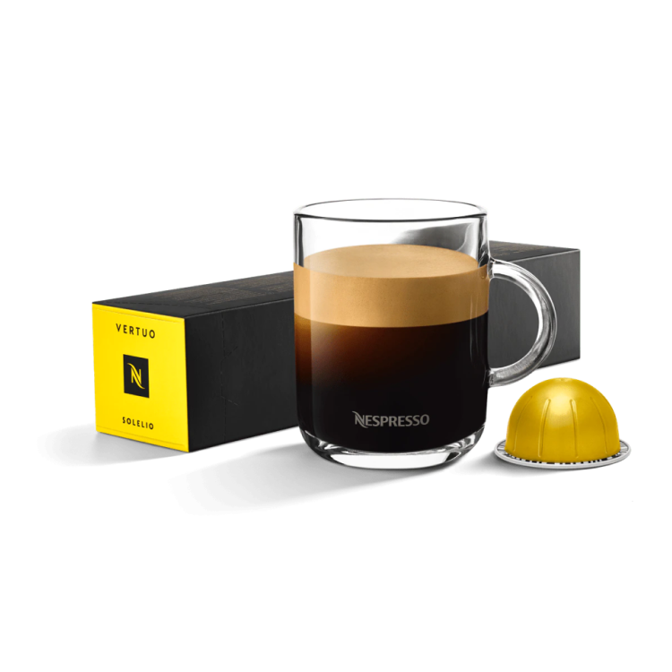 Solelio is our gentlest start to the day. This day’s dawning brings all the juicy acidity and fruitiness that we love in Kenyan and Colombian coffee. It’s a light roast with a light body – you can really ease into morning with this Vertuo coffee. Try Solelio coffee with milk and you’ll taste the fruity notes blooming into a creamy caramel indulgence.