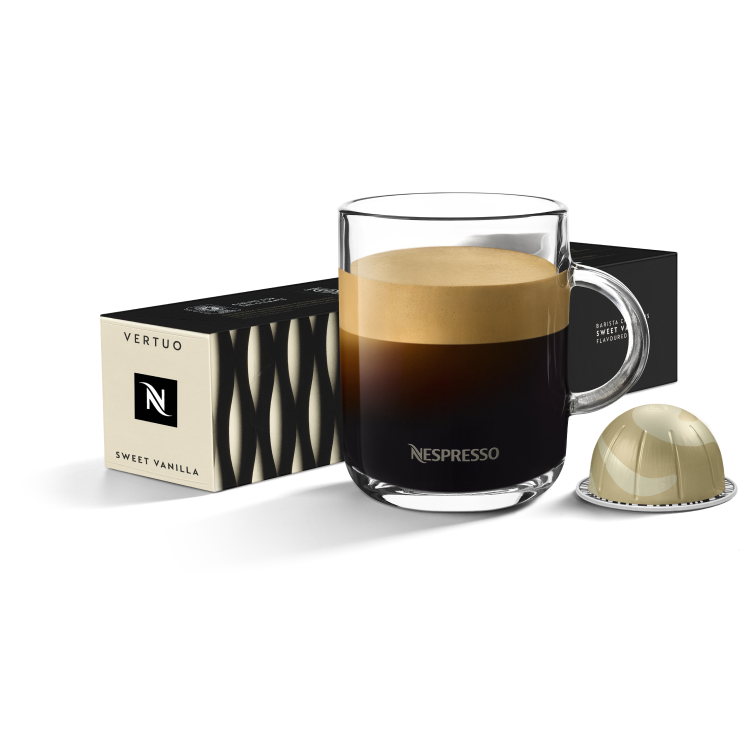 The Arabica coffees in this blend are split roasted. The Latin American beans are roasted medium dark and quickly to develop their sweetness. The second split gives this Vertuo flavoured coffee its velvety texture. We add the flavour in after roasting.