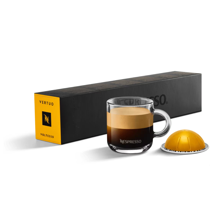 This is Voltesso – a light and sweet Vertuo espresso coffee that you might just make your golden standard. Its Brazilian bourbon coffee adds a biscuity aroma to the rounded, mild arabica coffee from the Colombian highlands.