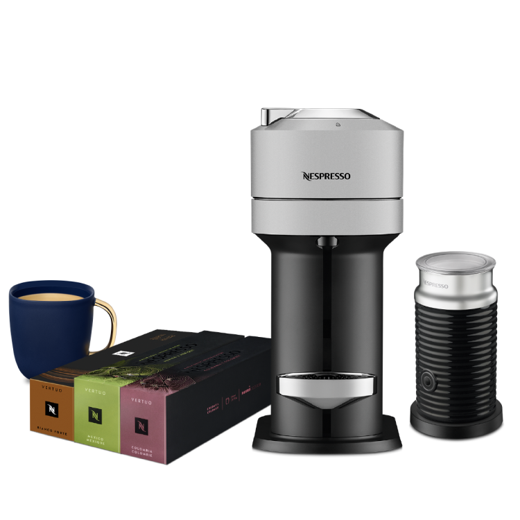 Nespresso introduces Vertuo, offering freshly-brewed coffee with a rich crema, even in a large cup. The machine's unique Centrifusionâ„¢ technology and specially-crafted dedicated range of capsules allows you to make five cup sizes all at the touch of a button.