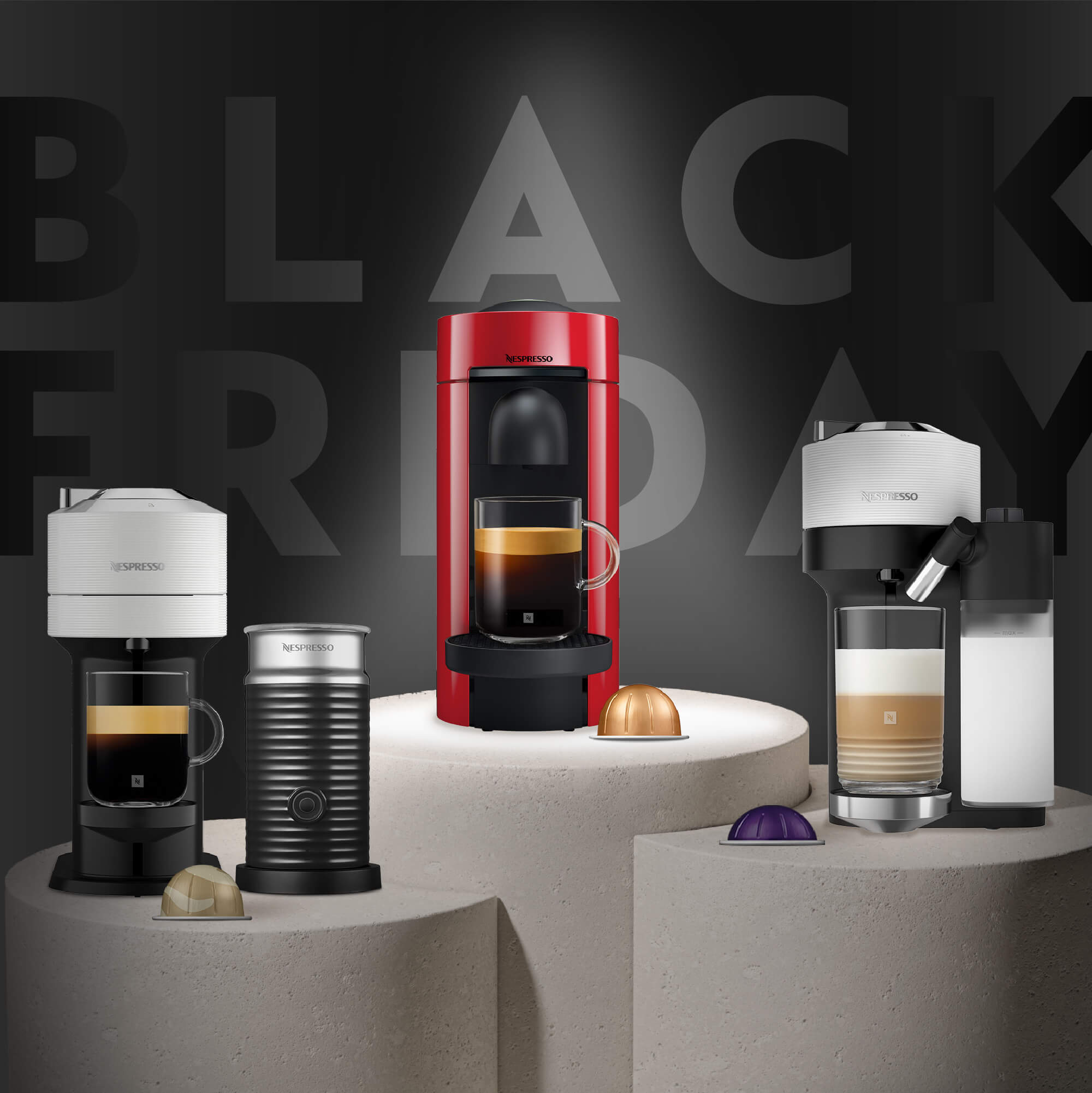 Lattisima, Vertuo Next, Vertuo POP and Vertuo POP + machines from Nespresso.