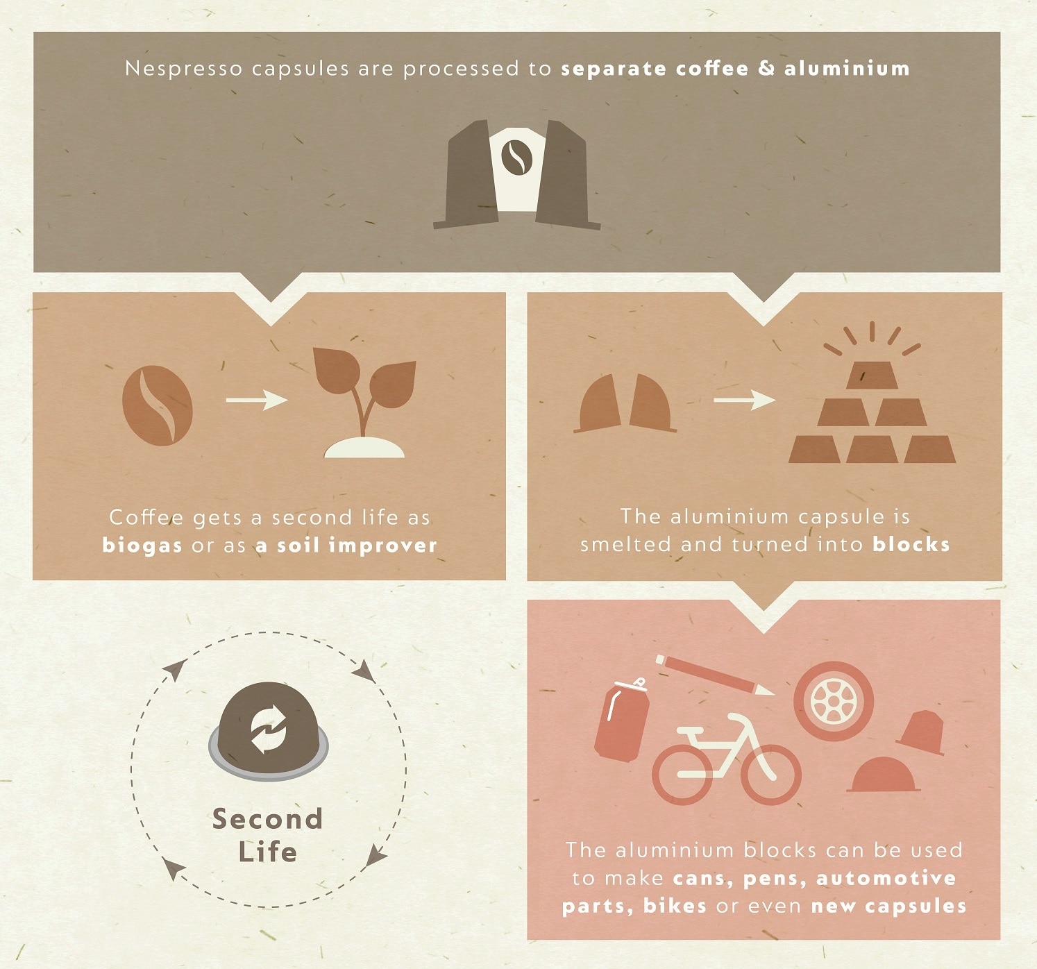 recycling plants, where the coffee is removed from the aluminium. The aluminium is smelted