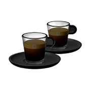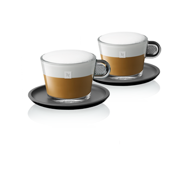 "The very essence of Nespresso is in the quality of its crema. As a tribute to the crema, and to better reveal its sensual emergence, designer Antoine Cahen has created the Glass Collection, which invites transparency in all its nakedness to join simple, unfussy design. Like a secret unveiled, the transparency of the cones haped cup offers a magical spectacle of the crema's formation. On a practical level, the highly-resistant toughened glass cups are solid and easy to handle.