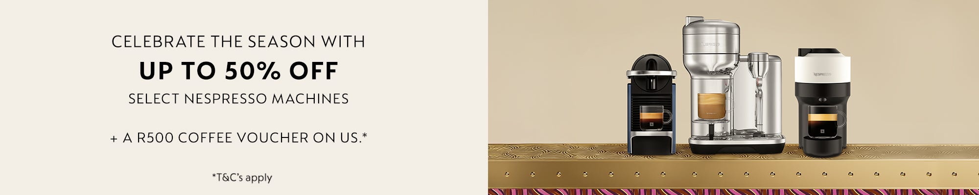 Buy any Nespresso machine and receive a R500 coffee voucher!